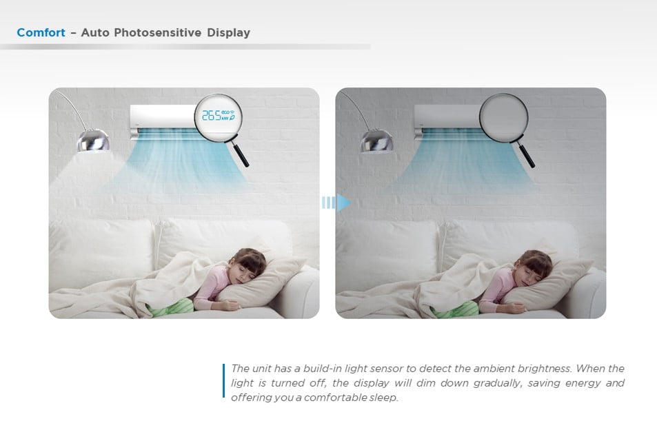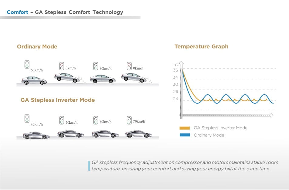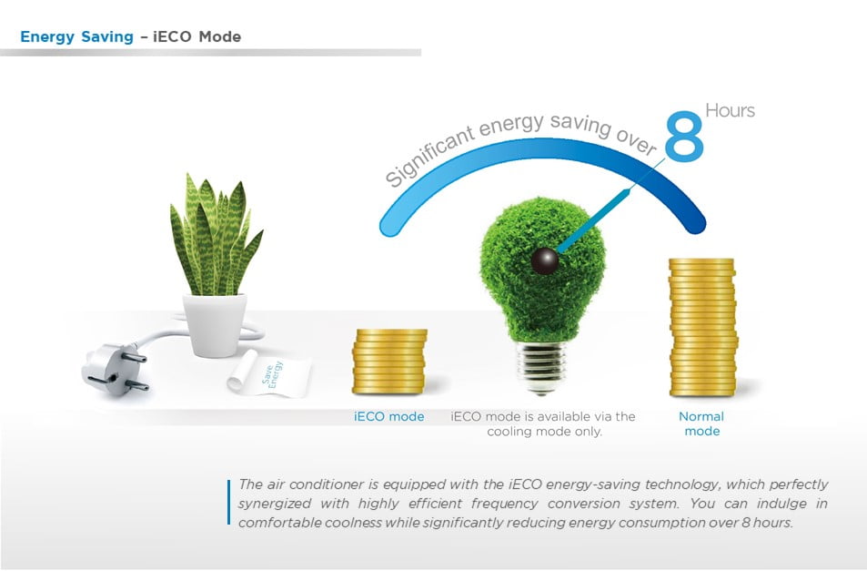 وتمتاز بمواصفات فريدة وبتقنيات متطورة لتبريد الهواء بجودة وكفاءة عالية وبسرعة تبريد فائقة، بالإضافة إلى مساهمتها في الحفاظ على البيئة وقدرتها الهائلة على توفير في استهلاك الكهرباء بفضل تقنية انفيرتر Inverter للتحكم في استهلاك الطاقة حسب الحاجة الفعلية، مما يدعم توجهات حكومتنا الرشيدة الهادفة إلى ترشيد استهلاك الطاقة.